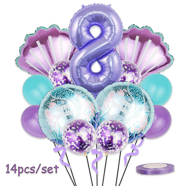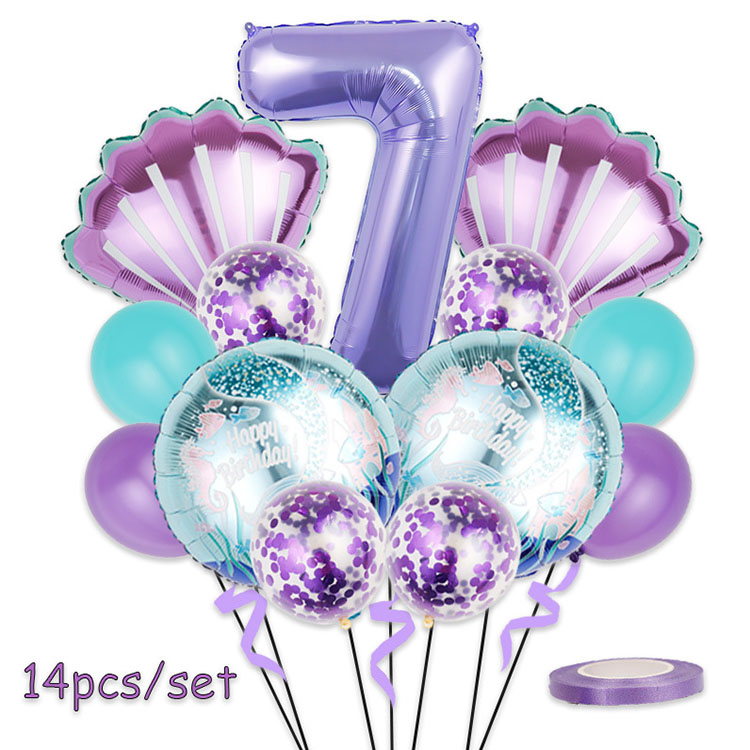 The 32 inch Number Mermaid Tail Shell Foil Balloon Set includes: