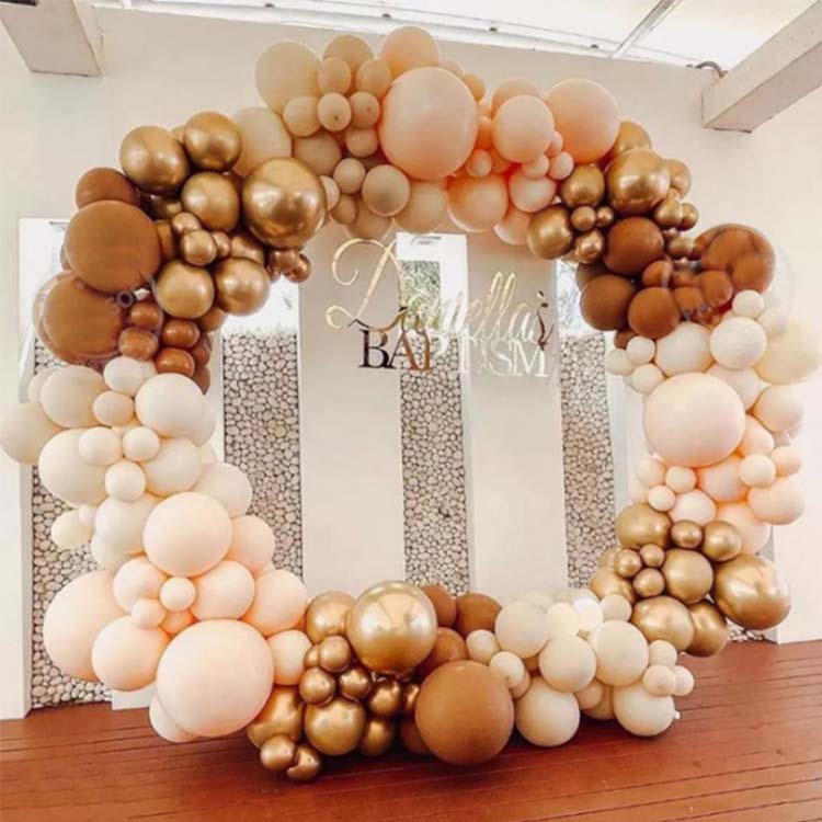 The custom balloon arch kit is the only product in the customer-customized range that is produced according to the specific requirements. Whether the customer is doing the customization as an individual or on behalf of a company, we can offer complete customized products. The customer wants to create their own brand packaging set. We will print the logo on the packaging bag for them. The customer needs to sell on the e-commerce platform. We will produce or affix all the materials required by the platform for them, including warning statements, barcodes, environmental protection requirements, etc. We have ample balloon accessories to help customers enhance the richness of the package content.