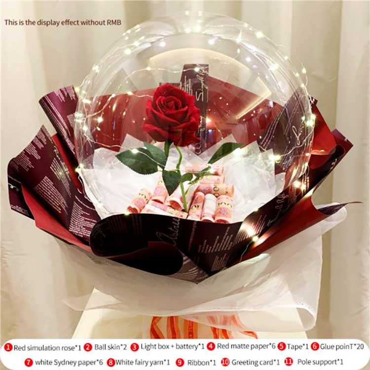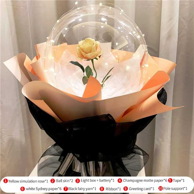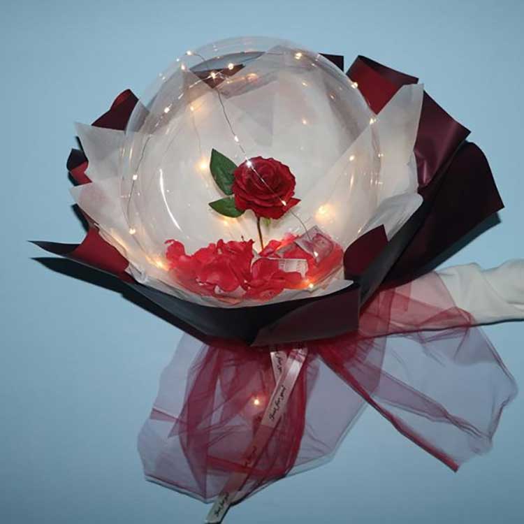 BOBO balloons can maintain their shape for about a month after inflation. The artificial roses are durable and can be used as furniture decorations. The string lights are detachable and can be used for room lighting. Whether you run a physical flower shop, gift shop, or jewelry store, or even a stall in a park or playground, BOBO Balloon Rose Sets are excellent best-selling products. The illuminated roses are very attractive to customers, offering great value for money and bringing many beautiful memories and emotional value, making them your top choice.
