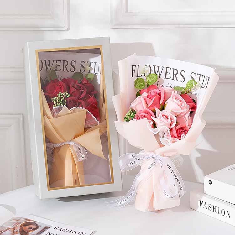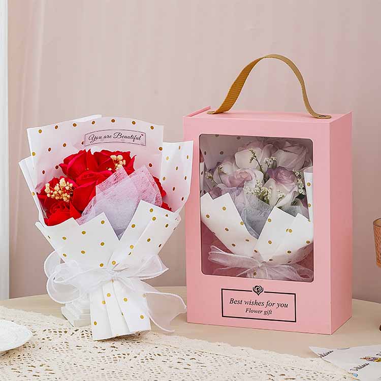Bouquet gift box has small and large sizes, you can purchase it according to your needs and preferences, and the packaging is generally in OPP bags and bags.
