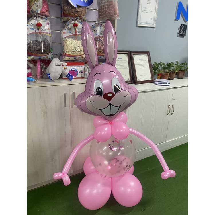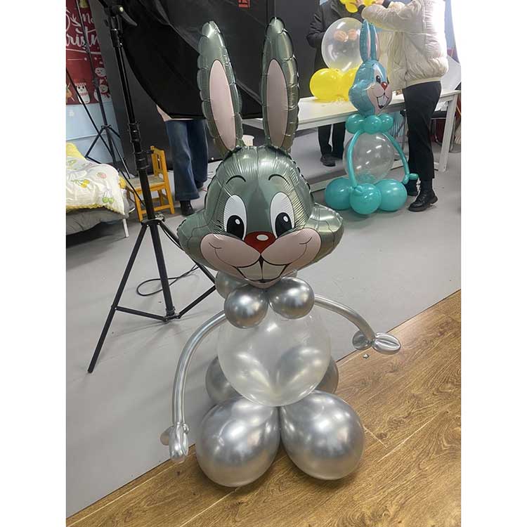 Bugs Bunny Foil Balloon used for Easter-themed activities. Bugs Bunny's long ears, playful smile, and lively eyes, along with their vibrant and rich colors, will attract children's attention and enhance the festive atmosphere. Bugs Bunny Foil Balloon Product Set. Combining foil balloons and latex balloons creates a 3D effect, igniting a joyful atmosphere. The Bugs Bunny balloon comes in four colors: pink, blue, gray, and green. Each foil balloon is paired with a latex balloon of the same color scheme. The products are highly durable. The foil balloons use a thickened sealing process, allowing them to stay inflated for 2-3 weeks. The latex balloons are also very thick; a 12-inch balloon uses 2.8g of latex and can stay inflated for about 4 weeks. All materials used are child-safe, odorless, and free of harmful substances, making them safe for children to handle. Bugs Bunny foil balloon isn't just for Easter; they can also be used as table decorations or photo props for children's birthdays, creating a fun and playful space. They can also be given as welcome gifts for a baby's 100-day celebration. Customization is available; . Newshine as a balloon manufacturer with years of balloon production experience.we can meet any of your creative needs.