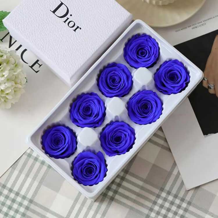 Roses are graded into three levels: A, B, and C. Grade A roses are larger and fuller. Our Everlasting Flower 8 flowers Rose Gift Box are made with Grade A roses. The gift box dimensions are 24cm*13cm*8cm. Each box weighs approximately 150g. Shelf life of preserved flowers: 3-5 years under normal storage conditions, which is more beneficial to your sales.