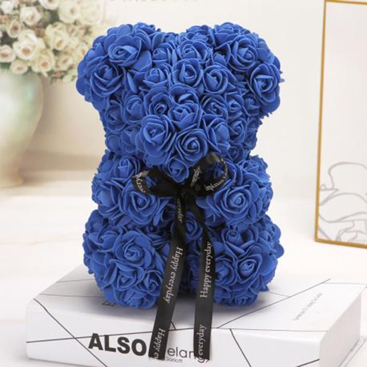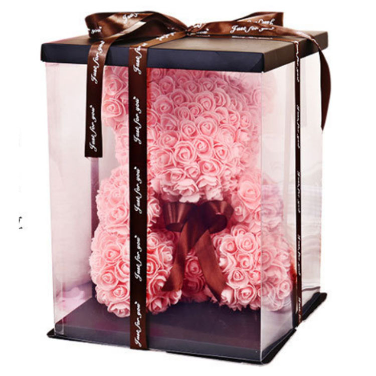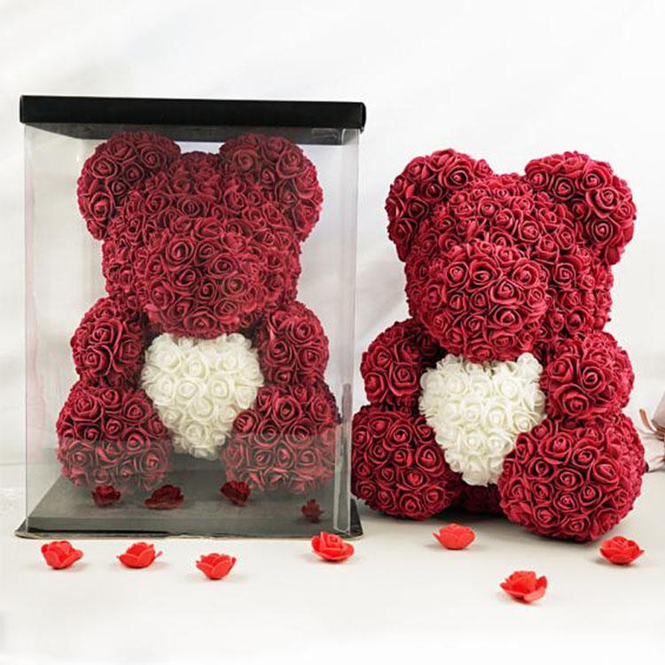 Our exquisite rose bear have 25cm, 40 cm and 60 cm for customers to choose. What’s more, we also have many colors for you to choose. The tie of rose bear can also be customized according to customer needs. Last but not least, we also support customers to customized the package box. All in all, we provide one-stop service. Artificial PE uses high-tech technology and is purely handmade. It feels delicate and very soft and can be stored for a long time.