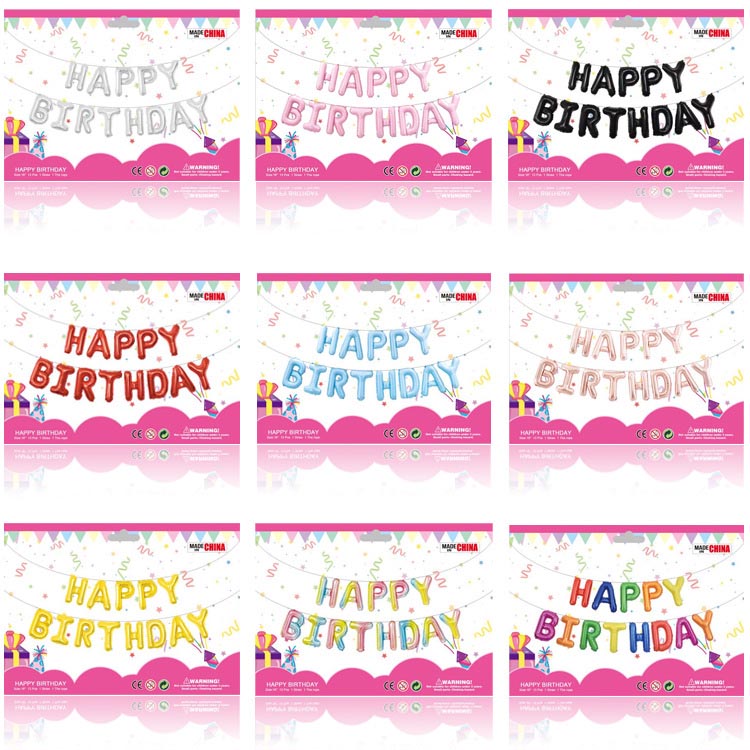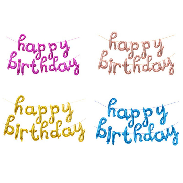 A "Happy Birthday" balloon kit typically includes a variety of balloons that are ready to be inflated and arranged, providing a complete decoration package for the birthday celebration. The kit often features balloons that are color-coordinated and may include a mix of shapes, sizes, and designs that all align with the "Happy Birthday" theme. In addition to balloons, the kit may also include ribbons, curling ribbons, flags or table curtains to ensure the balloons are ready to be displayed.