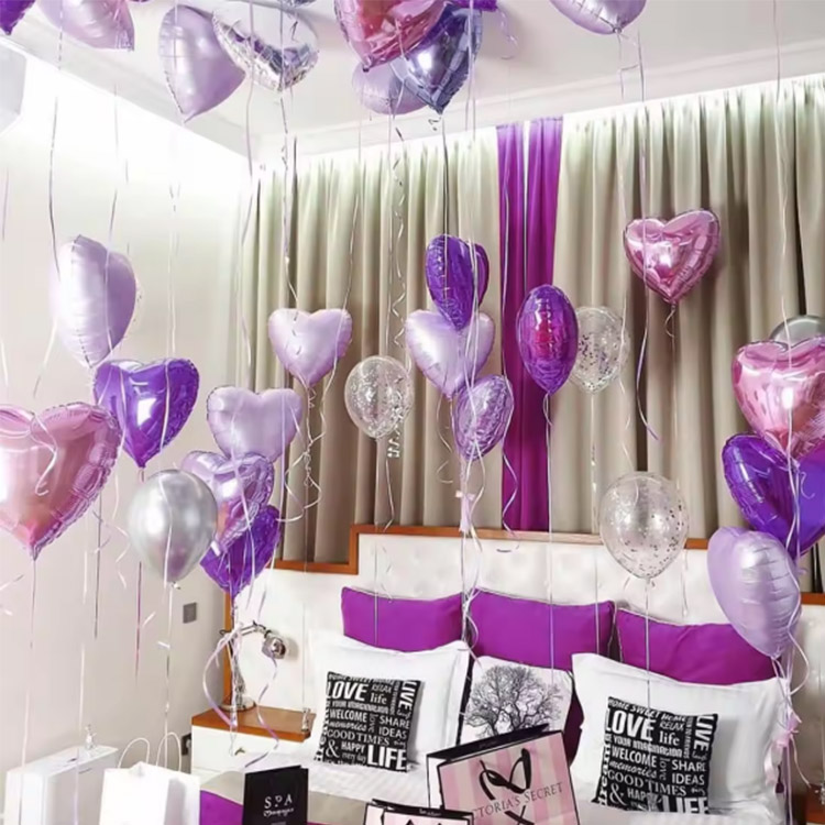 Proposal: Due to foil heart balloons has special shape that symbolizes love, foil heart balloons are very suitable for the decoration of the proposal scene and can help create a warm and romantic environment.