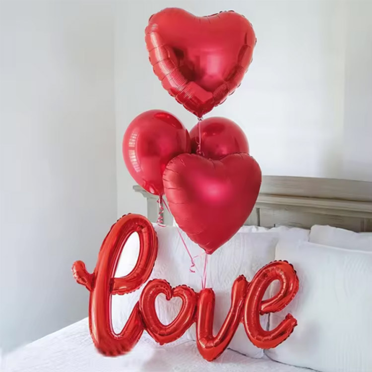 Valentine's Day heart-shaped aluminum foil balloons are a kind of holiday decoration.The surface is printed with various Valentine's Day themed patterns, such as cupids, roses, hearts or romantic slogans, such as "I love you",often used in Valentine's Day celebrations to add a romantic atmosphere.