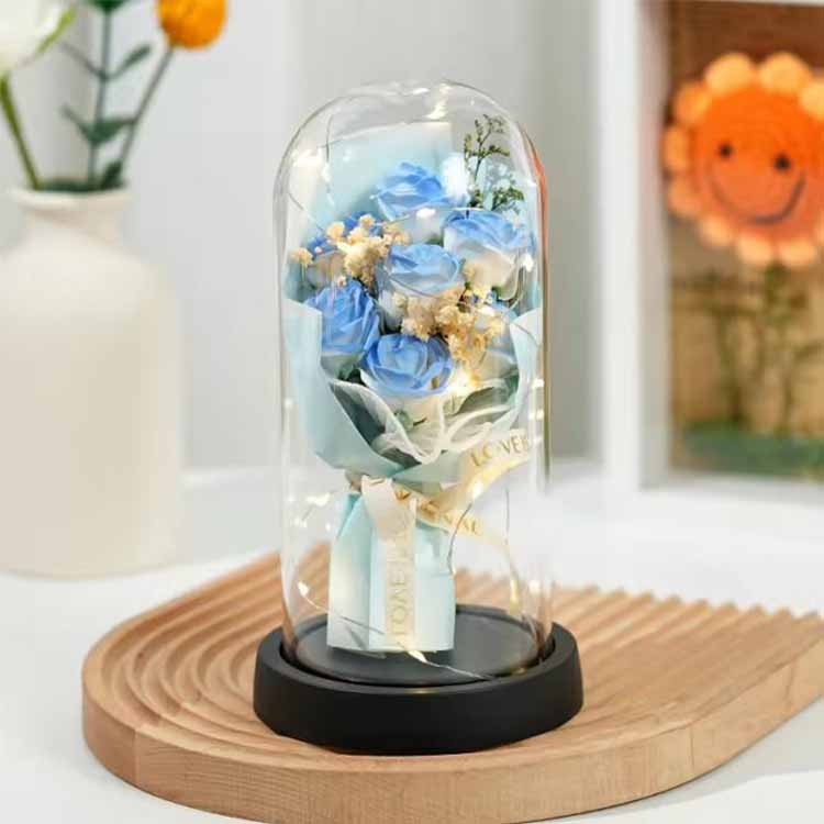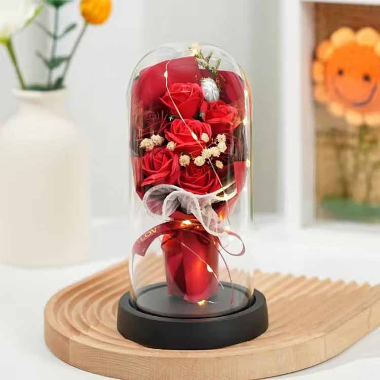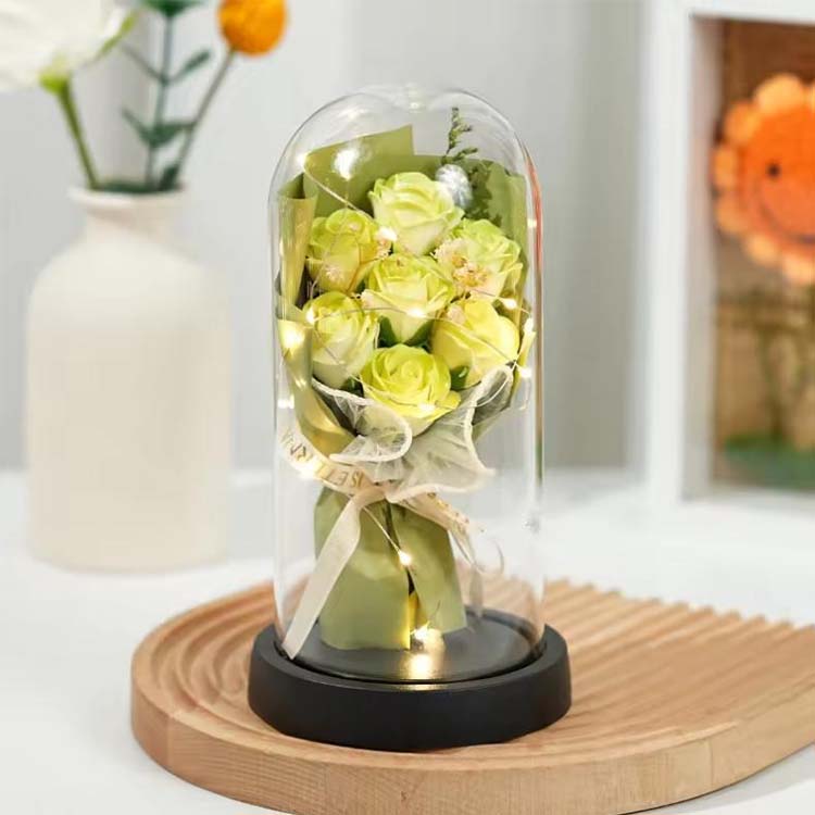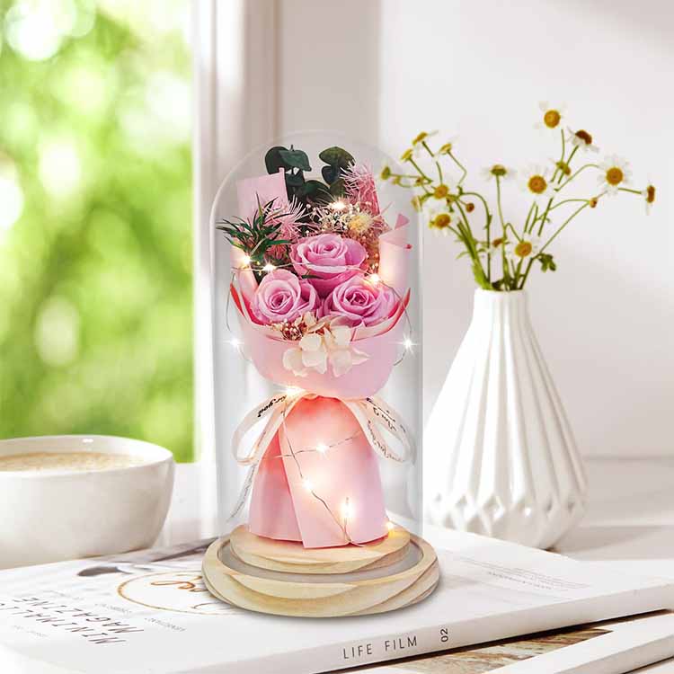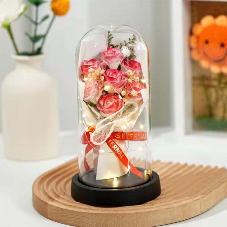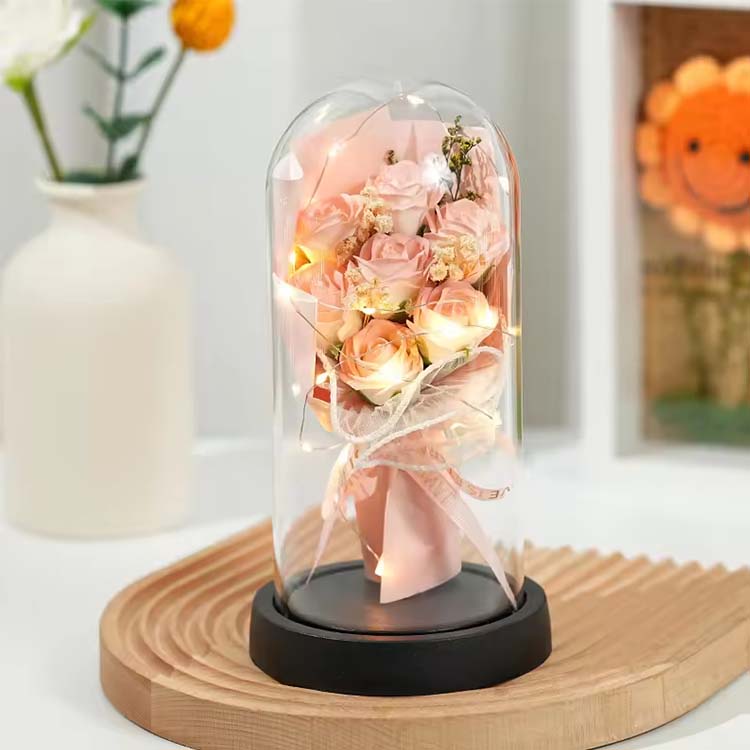 Our glass dome soap rose bouquet with LED gift box combines practical functionality with sentimental meaning, making it a gift worth cherishing. Whether you're adding a touch of romance to your home or sending a special gift to someone special, it's a warm and unforgettable gift.