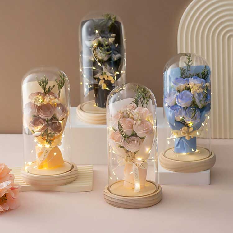 When a customer enters, the shimmering lights of glass flower will instantly attract their attention. They make the gift for loved ones, parents, and friends on Valentine's Day, Christmas, Thanksgiving, Father's Day, and Mother's Day. They can be placed in the living room, on the balcony, or by the bedside, always carrying your heartfelt wishes. They are a high-end holiday gift; the preserved flowers inside convey lasting sentiments.
