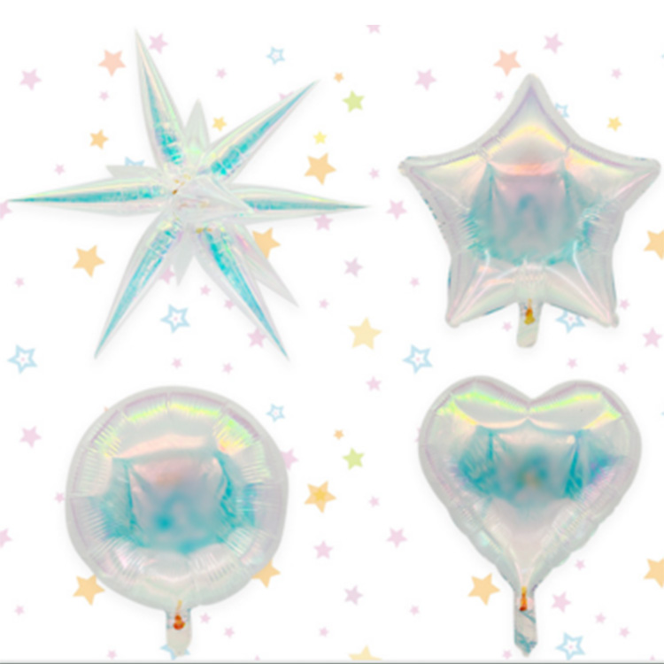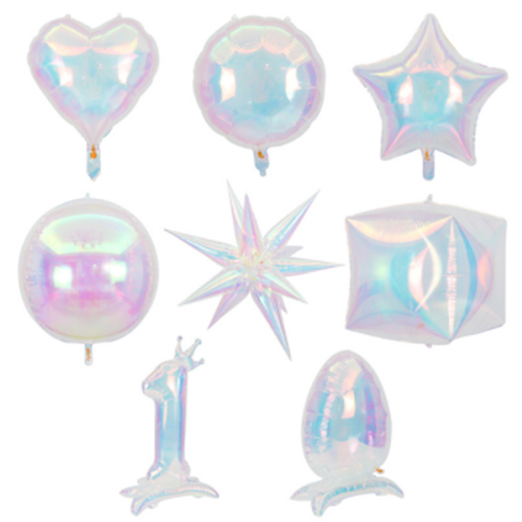 As the name suggests, iridescent foil balloons is very colorful. Although the whole body is transparent, it reflects different brilliance under the special process, just like a rainbow. Has a candy-like sweetness. Iridescent foil balloons are great for decorating parties. The size have 18 inch, 19 inch, 22 inch, 26 inch, 32 inch, 40 inch, etc. The shape have heart shape, five star shape, round shape, starburst foil balloons, 4D round shape, 4D square balloons, drop-shape, etc.