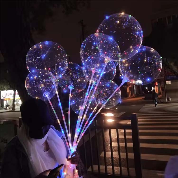 LED BOBO balloons come in many shapes and sizes, such as printed BOBO balloons, special-shaped BOBO balloons, transparent BOBO balloons, etc. There are many designs. Printed BOBO balloons have single-sided printing and double-sided printing, and the sizes and styles include 20 inches, 24 inches, and special-shaped printing, etc. You can choose your favorite BOBO balloon style according to your needs.