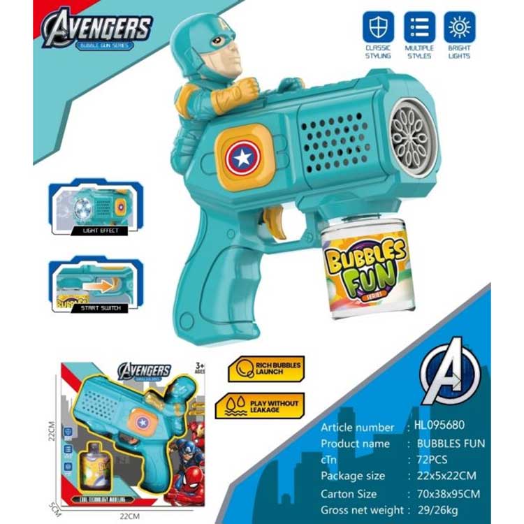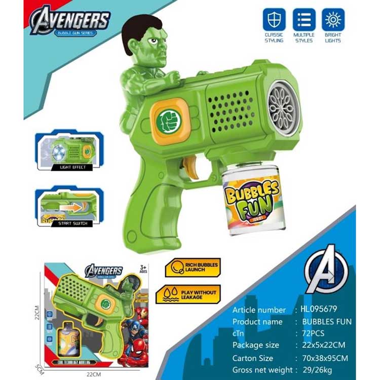 The set includes a Marvel Spider Man Bubble Machine and two bottles of bubble solution. We also give away extra bubble concentrate. The large capacity and concentrate. This electric bubble gun is suitable for children of all ages, even those over 14. If you have kids of different ages at home, this is the great choice—the whole family can play together.
