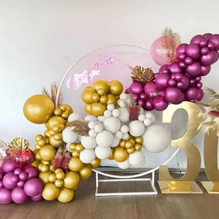 Metallic Gold Sand White Balloon Garland Arch Kit is the latest design developed by our Newshine® factory. Its uniqueness lies in the mutual matching of the two metal colors, which are composed of 117 accessories, creating a delicate balloon arch effect. The set includes balloons in three sizes: 5 inches, 10 inches and 18 inches. Through ingenious combination and matching, the balloon arch presents a sense of hierarchy and visual effects.