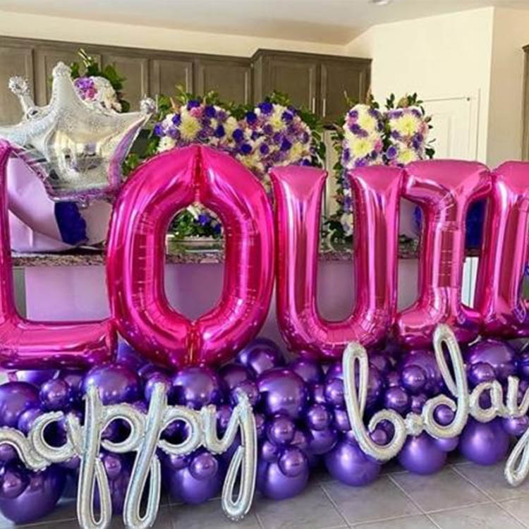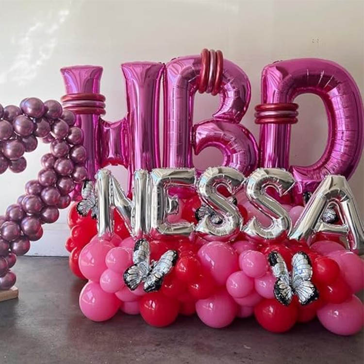 Large pink letter balloon diameter 40-60cm, strong aura, generally used to create large scenes. For example, at the party scene, the background wall composed of multiple large hot pink balloons is rich in color and has a strong visual impact.