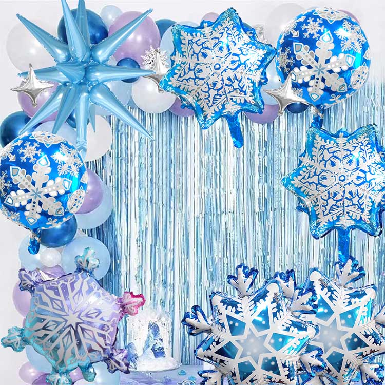 Princess girl children's first birthday decoration scene arrangement snowflake foil balloon, winter wonderland party foil balloon,etc.It can be well integrated into the theme and add highlights to the party.
