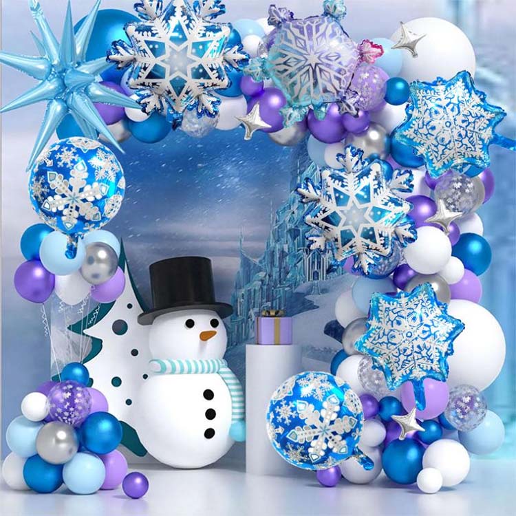 Snowflake foil balloons are a beautiful and practical decorative element that can be used in scenes with increasingly festive and winter-themed atmospheres.These balloons can not only add a festive atmosphere to your party, but also become the perfect background for taking photos.