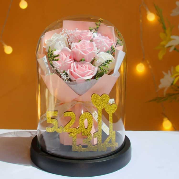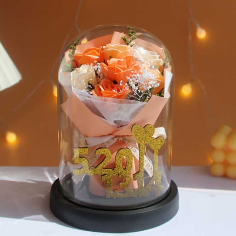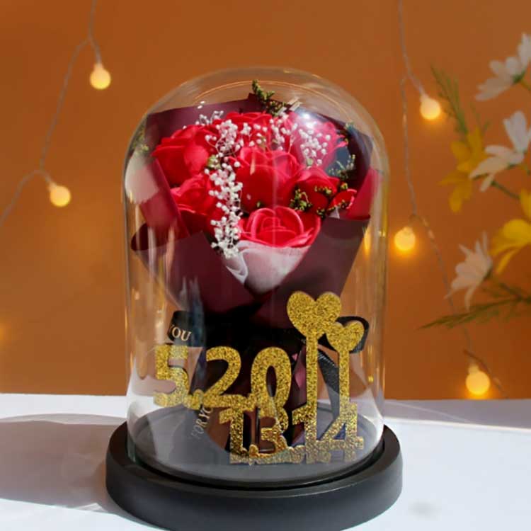 This glass rose bouquet is designed to prevent flowers from withering, and the roses inside will not fade. The bouquet is very lifelike, almostistinguishable from real flowers, and it can present the beauty of the bouquet very well.Inside, the golden numbers 520+1314 represent the numbers 520 and 1314, symbolizing love and highlighting the thoughtfulness of this gift.