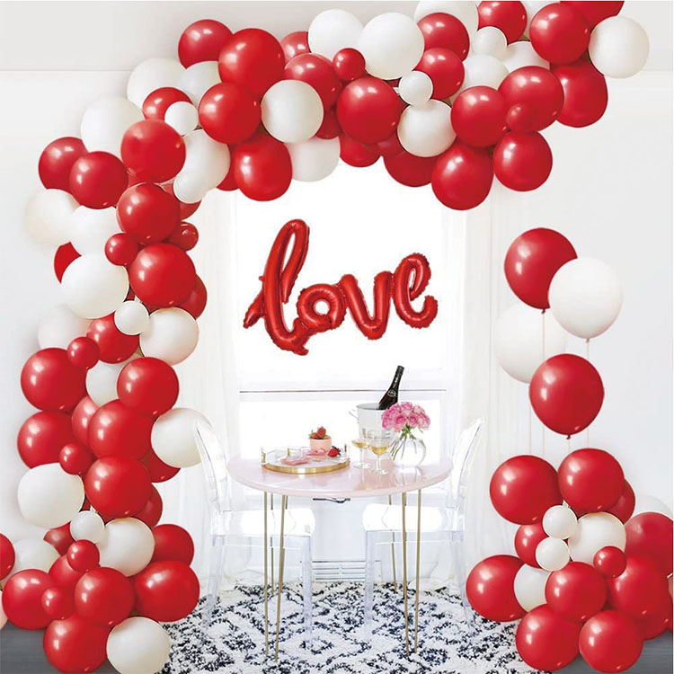 When arranging the Valentine's Day series balloon arch kit, what you also need to pay attention to is the color matching of the balloons. Don't just a single red color, it is better to match with white color, the proportion can be half and half, or more white color, so as not to look cheesy. In addition, you can also choose other decorative items as needed, such as confetti, small daisies, etc.